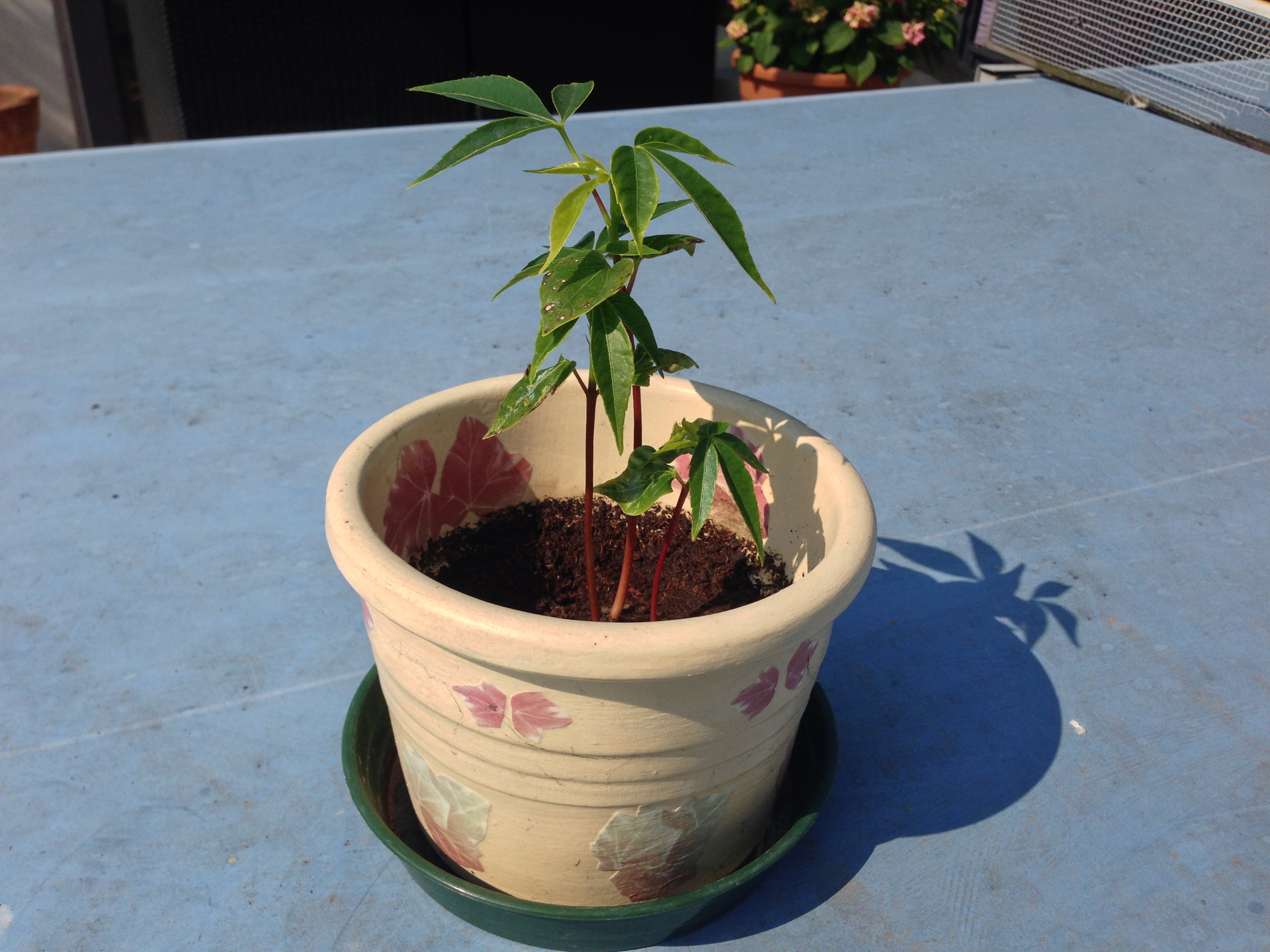 Finora i kapok sono le piante più “diludendo”, come direbbe Joe Bastianich. Se a metà luglio la crescita sembrava procedere a gonfie vele, nel mese di agosto le foglie hanno cominciato ad accartocciarsi su sé stesse. A distanza di mesi non ne ho ancora capito il motivo, ma la notizia positiva è che sono ancora vive. Ecco la foto.