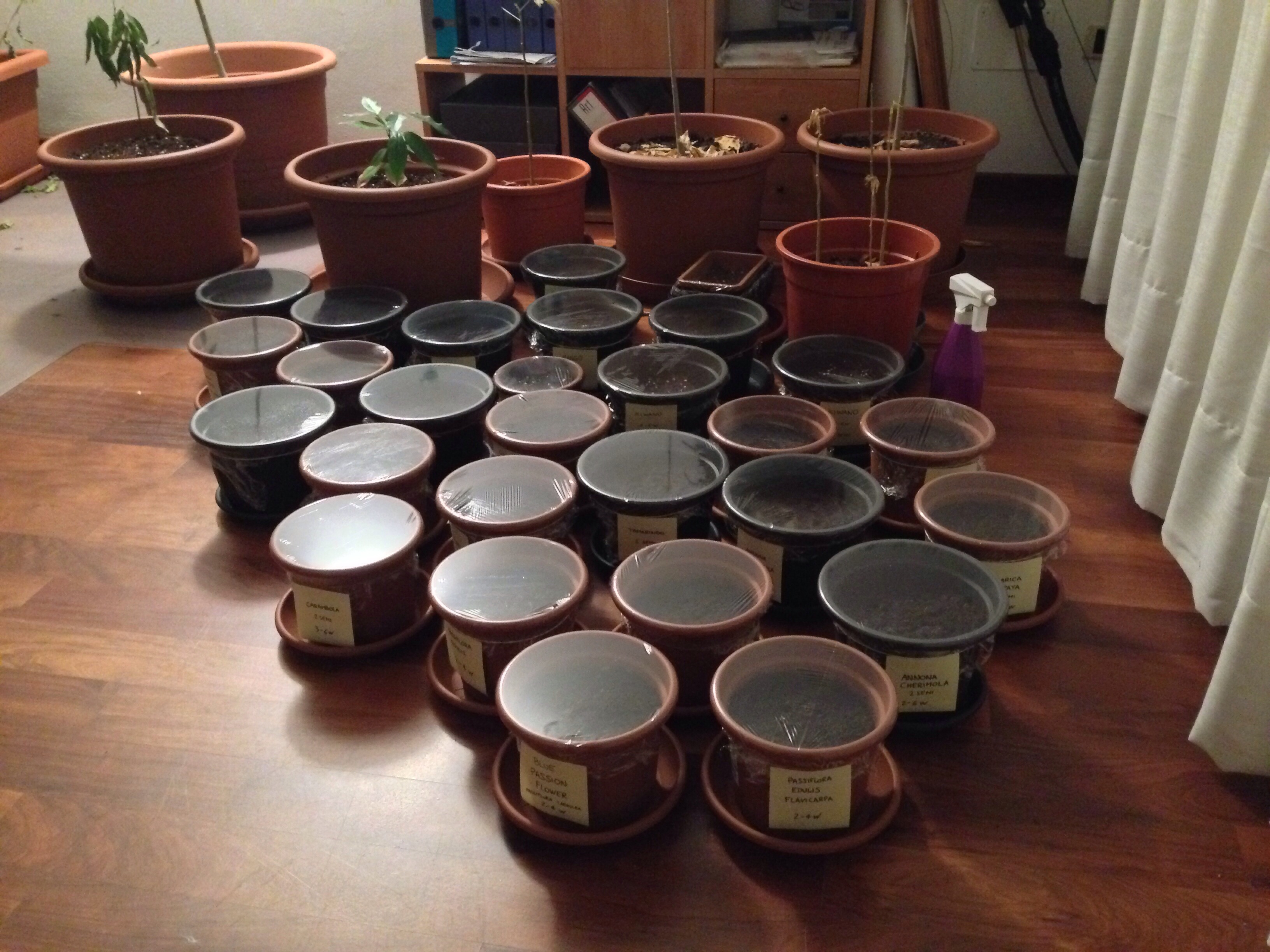 Yo yo yo! Oggi, primo aprile, ho proceduto alla semina di tutte le piante tropicali a parte quelle di dragon fruit, per le quali aspetterò che faccia più caldo. Un’intera mattina e un intero pomeriggio per riempire i vasi di argilla espansa, terriccio universale e un po’ di torba, seminare i semi, sigillarli con del celofan e infine categorizzarli con dei post-it. Adesso si tratterà solo di aspettare. I primi semi destinati a germogliare dovrebbero essere quelli di kiwano e di guava fragola. A presto per ulteriori aggiornamenti.